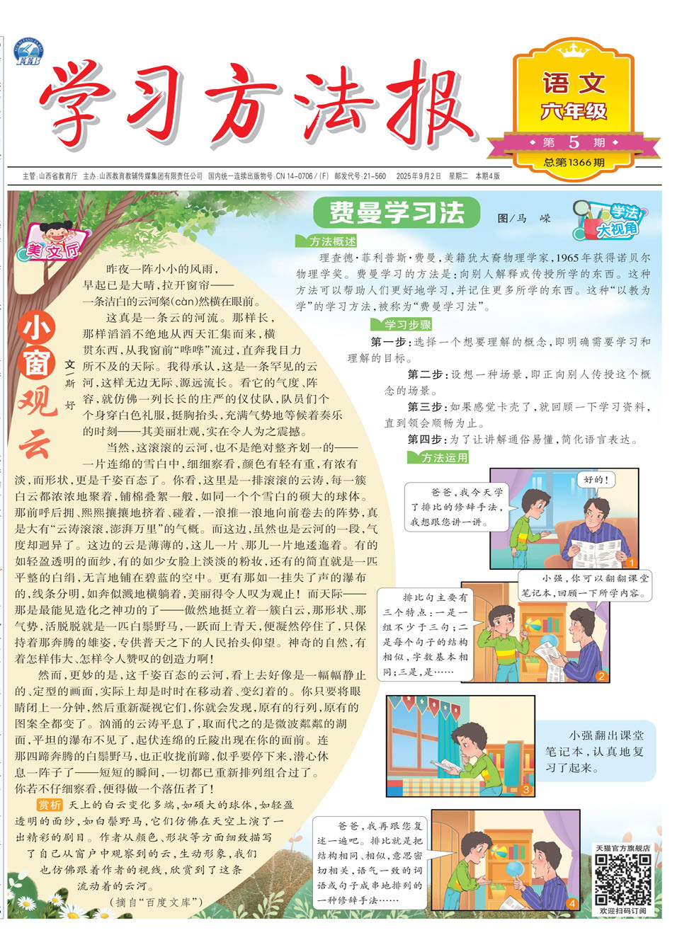 昨夜一阵小小的风雨,早起已是大晴,拉开窗帘——一条洁白的云河粲(càn)然横在眼前。 这真是一条云的河流。那样长,那样滔滔不绝地从西天汇集而来,横贯东西,从我窗前“哗哗”流过,直奔我目力所不及的天际。我得承认,这是一条罕见的云河,这样无边无际、源远流长。看它的气度、阵容,就仿佛一列长长的庄严的仪仗队,队员们个个身穿白色礼服,挺胸抬头,充满气势地等候着奏乐的时刻——其美丽壮观,实在令人为之震撼。