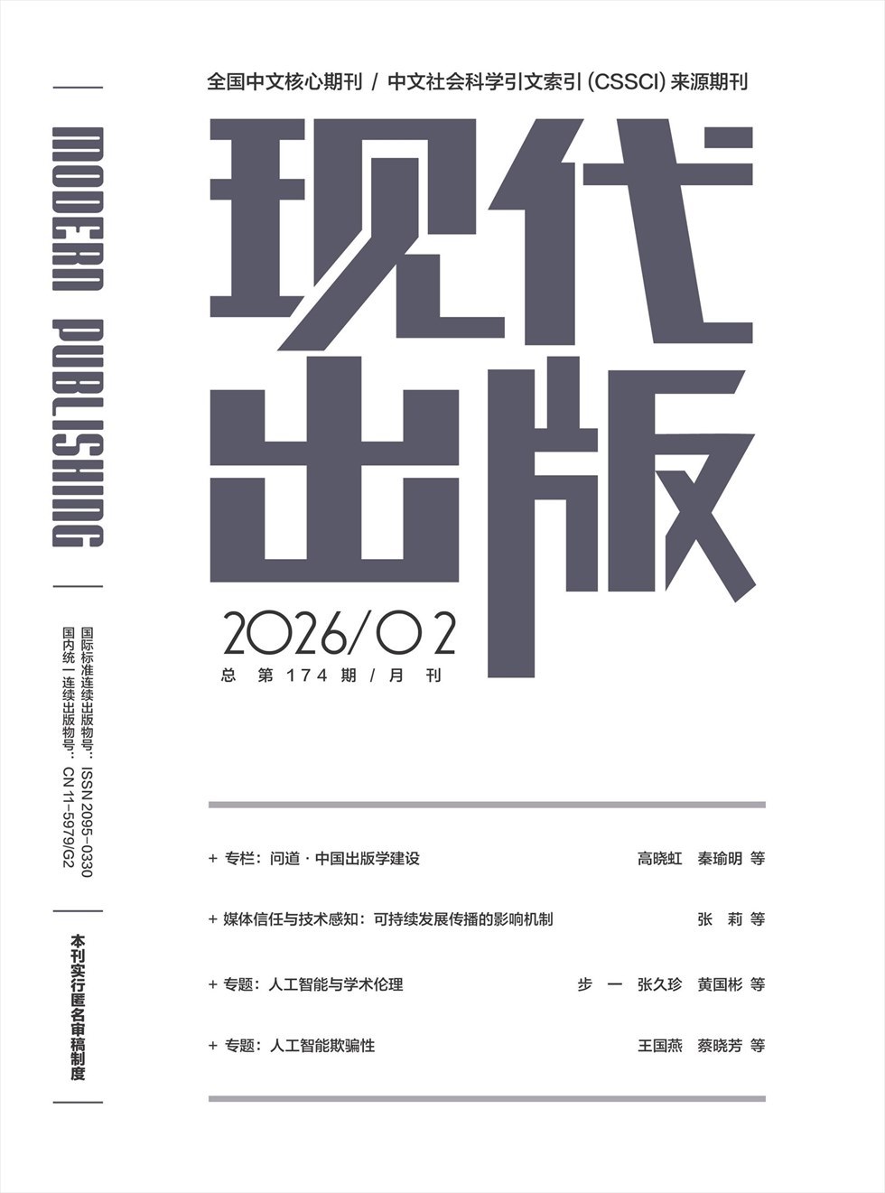 《现代出版》(原《大学出版》)是国家教育部主管,中国大学出版社协会、中国传媒大学出版社共同主办的双月出版刊物。以宣传党和国家出版政策、弘扬现代出版文化、反映改革发展动态、交流理论研究成果、服务现代出版事业为宗旨,努力展示我国现代出版业和出版学的发展面貌,突出对出版工作的指导性、服务性,注重研究与探索出版实践工作中的热点、难点与焦点问题,凸显政策性、学术性、现代性和实用性,是出版界同仁共同的交流平台与精神家园。