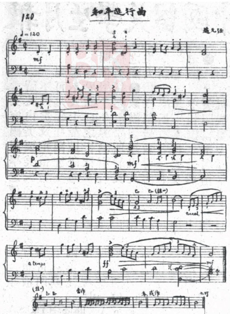 摘要:作为音乐家的赵元任在中国近现代音乐史上留下了大量的音乐作品,他的声乐和器乐作品广为流传,成为20世纪初中国近现代音乐的拓荒者之一。《和平进行曲》是赵元任的钢琴作品,被誉为“中国第一首钢琴曲”。该曲是赵元任于1914年在康奈尔大学留学时创作,1915年发表于《科学》杂志,《科学》杂志编者在附录中为该曲作了推介。《科学》杂志是中国科学社发起设立的月刊,发文主要以数学、物理、化学等学科为主,在附录中刊载音乐作品实为少数,体现了对我国近代音乐转型的关注与支持。