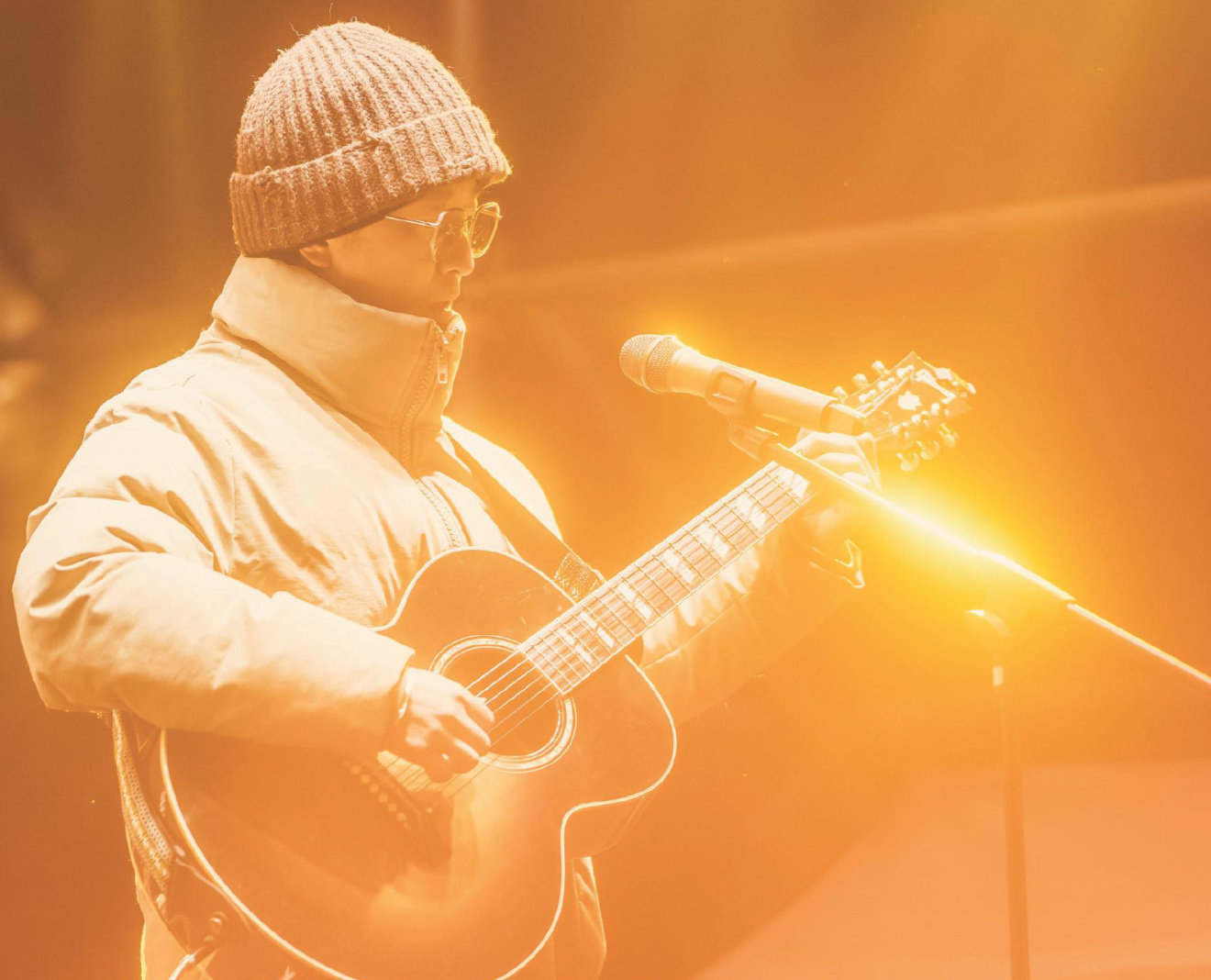 第一次听说韩洋,是从音乐人宁夏之口。宁夏将他一通的夸赞,称此人是“正儿八经演奏乐器的,还写了很多好歌,两人合作很多年”,并执意下次一定当面向我介绍他。 今年五月份,在一场民谣音乐会上,我见到了韩洋。当天,他并未单独表演曲目,而是作为宁夏的搭档,以一把木吉他为其做现场伴奏、和声。 当唱至副歌部分时,夕阳正准备悄声地钻入云层,初夏的风在那一刻轻柔滑过了面颊,木吉他的音色裹挟着歌声,穿梭在了现场