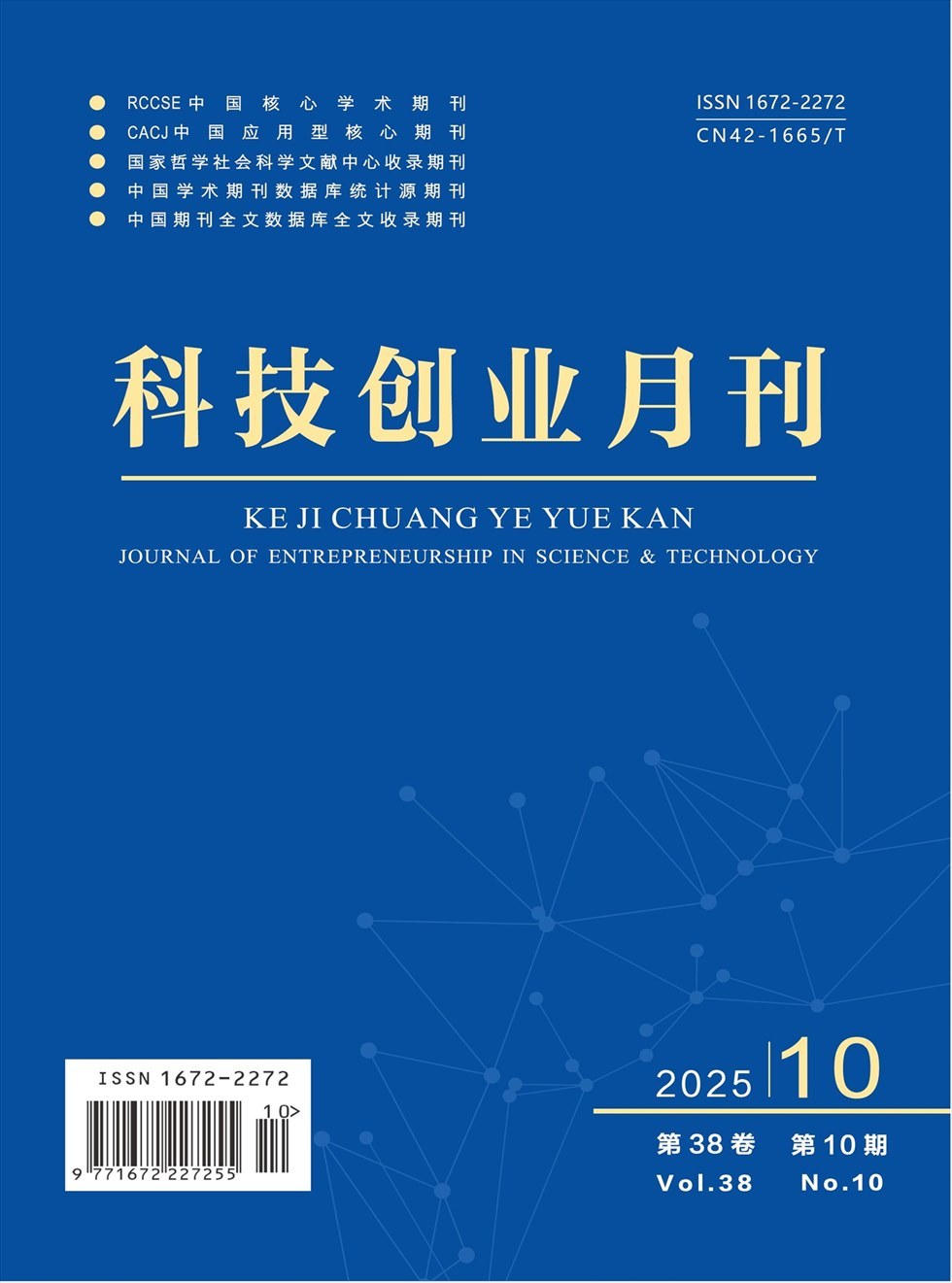 《科技创业月刊》创刊于1987年,曾用刊名《适用技术市场》,是我国创刊较早的综合类科技期刊之一。系经原国家新闻出版广电总局批准,由湖北省科学技术厅主管,湖北省科技信息研究院主办,湖北省科技传媒有限责任公司出版,面向国内外公开发行的综合类学术性月刊;国际标准刊号:ISSN1672-2272,国内统一刊号:CN42-1665/T;系RCCSE中国核心学术期刊、中国核心期刊(遴选)数据库收录期刊;中国知网、万方、维普等数据库全文收录期刊;多次被评为“湖北省优秀期刊”。