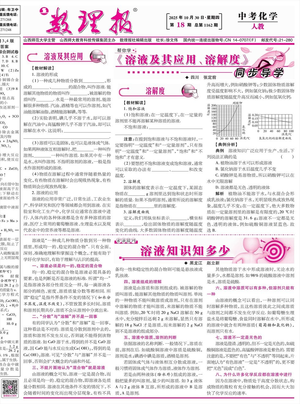 《数理报》是由山西省教育厅主管,山西师范大学主办,面向全国发行的中小学生理科教学辅导类报纸