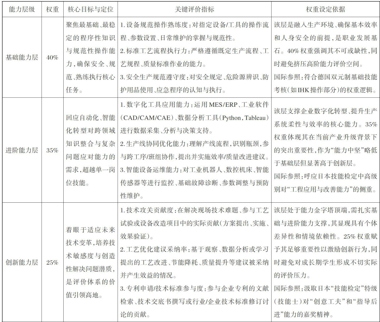 [摘要]实习作为衔接职业院校人才培养与企业用人需求的核心纽带,承载着知识转化、能力锤炼与职业精神塑造的多重使命。然而,当前实习评价体系面临主体失衡、标准滞后、结果悬置与权益失守等结构性困境,导致其育人价值难以有效释放。基于能力本位与多元协同治理理论,构建“四维一体"改革框架:通过主体激活强化企业深度参与,标准赋能构建分层动态指标体系与可信评价机制,通道贯通实现评价结果在升学就业中的实质性应用,权益托底完善法治保障与高效监管体系,从而推动实习评价从“形式合规”向“价值创造”跃迁,重塑其服务学生能力真实生成与产业转型升级的育人本质。