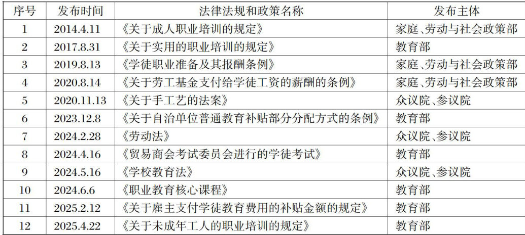 [摘要]中国特色学徒制是由法律法规和政策构成的制度体系,完善制度内容是中国特色学徒制建设的必然要求。波兰学徒制制度建设及落实颇具成效,基于扎根理论对波兰学徒制的12份法律法规与政策进行编码后发现,其构建的学徒制制度内容框架,与已有研究的制度内容框架既有共性也有差异性。波兰学徒制从宏观、中观、微观三个层面,确定“四方”参与者的职责、将培训路径标准化、系统规范学徒资格认证、充分保障学徒权益。完善中国特色学徒制,可以理性借鉴国外经验,构建四方协同的治理格局,规范学徒培训标准,完善资格认证体系和健全学徒权益保障机制。