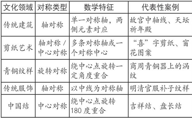 摘要:本文在传统文化视角下,探讨初中数学“对称图形”教学的有效实践方法与策略。首先分析数学教材中轴对称图形与中心对称图形的主要内容,结合中国传统建筑、剪纸艺术、青铜纹样等文化标识,设计融合传统文化元素的教学案例。研究发现,将传统文化融入数学教学不仅能增强学生对对称概念的理解,还能提升其文化认同与学习兴趣。本文总结的情境化教学、可视化教学以及探究性学习等策略,为初中数学教学与传统文化融合提供了实践路径,旨在为一线教学提供兼具理论支撑与实操价值的参考。