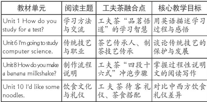 摘要:本文以《Go forit!》教材阅读板块为载体,探索潮州工夫茶文化与英语阅读教学的深度融合路径。文中设计了“文化解码—文本重构一实践运用”三阶教学模式,融入了英语教学案例与评价体系。两个平行班的对比实践表明,该融合教学高效提升了学生英语阅读能力、文化意识与文化交际能力,最终达成“文脉传承与素养培育”的学科育人目标。