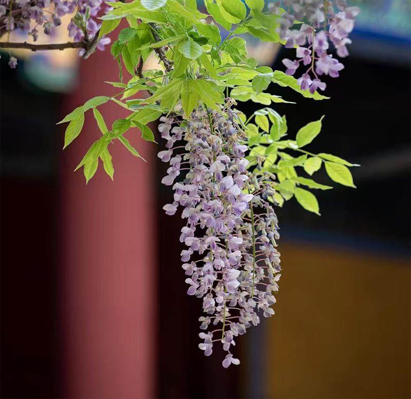 谷雨时节,京城紫藤如约盛放。老胡同的四合院中,紫穗垂帘,如云似雾,轻绕着灰瓦朱门。细雨润过,花穗更显柔润,暗香浮动,漫过青砖古巷。风一吹,紫花簌簌飘落,铺就一地温柔。“紫藤挂云木,花蔓宜阳春”,古都的雅致与谷雨的清润相融,在这一帘幽紫里,藏着北京最动人的暮春诗意。 摄影 陈朊 文/编辑 郎永