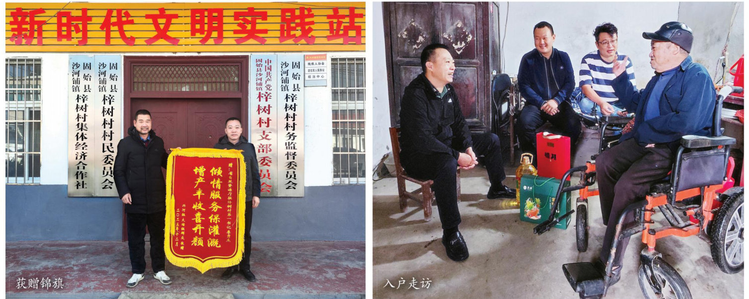 “李书记,这面锦旗您一定要收下!”近日,固始县沙河铺镇梓树村种植大户许加青,将一面写有“倾情服务保灌溉,增产丰收喜开颜”的锦旗送到驻村第一书记李秀杰的手中。 自2025年2月驻村以来,李秀杰带领驻村工作队走访村民、纾解民忧,从疏渠保灌润田到化解信访难题,从关爱空巢老人到厚植孝善家风,以件件实事温暖梓树村群众,用责任与担当书写着新时代驻村帮扶的答卷。 渠通民心通 “守着水渠不能用,望着渠水难浇